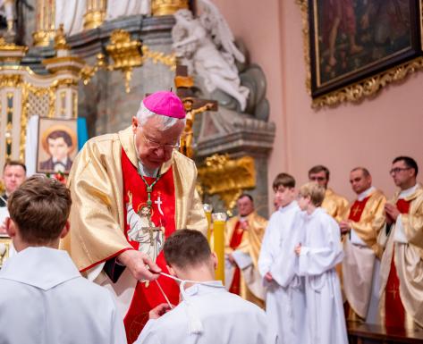 W czasie Eucharystii biskup Kaleta udzielił 66 ministrantom błogosławieństwa do funkcji akolity w zgromadzeniu liturgicznym. Nowi akolicie pochodzą z 18 parafii Diecezji Kieleckiej. W uroczysości wzięło udział również trzech nowych ceremoniarzy, którzy otrzymali błogosławieństwo do tej funckji oraz ośmiu ministrantów, którzy zostali przyjęci do Służby Liturgicznej.