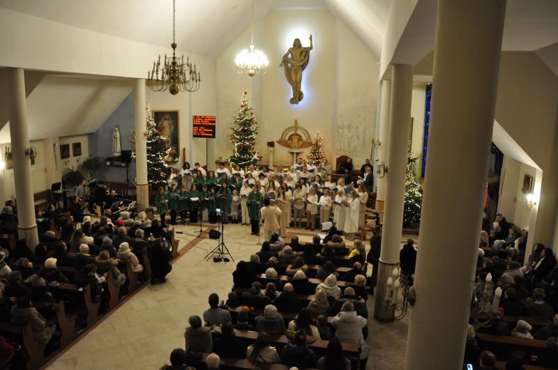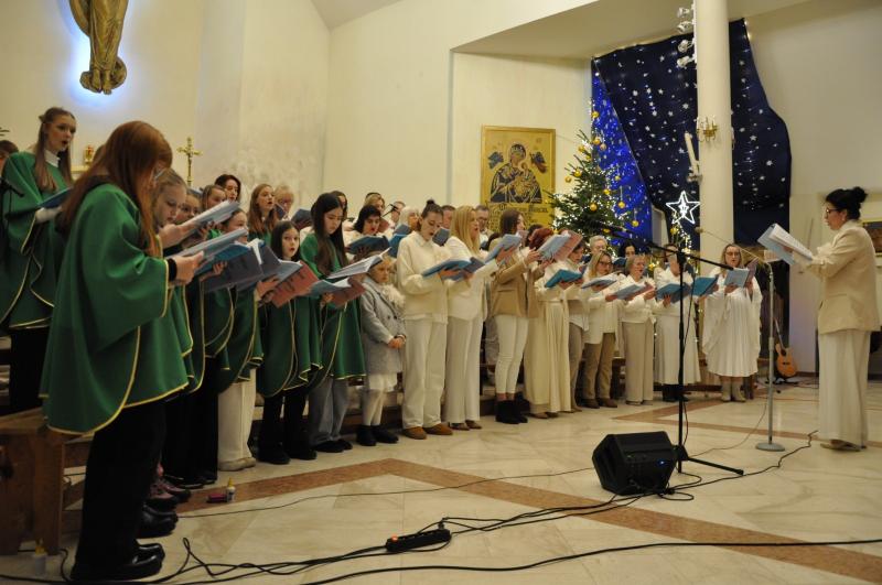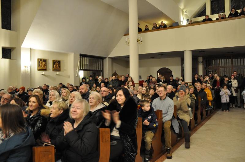 W półtora godzinnym koncercie wybrzmiało mnóstwo pięknych, często zapomnianych kolęd i pastorałek w wykonaniu połączonych sił chóru HARMONIA i scholi GLORIA przy akompaniamencie naszego organisty Piotra Sitkowskiego wraz z muzykami towarzyszącymi. Różnorodność repertuaru, fuzja stylów, ciekawe aranżacje oraz dopełniające je teksty recytowane stanowiły o dynamice tego wydarzenia i płynącym z niego przesłaniu.