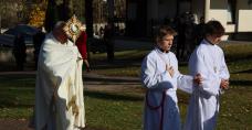 W sobotę, 1 listopada wzgórze brzezińskie odwiedziły tłumy ludzi, którzy odwiedzali m.in. swoich bliskich na cmentarzu znajdującym się obok kościoła. Tego dnia w parafii gościł Ksiądz Biskup Viliam Judák z Nitry na Słowacji, który wprowadził relikwie św. Andrzeja Świerada i Benedykta i wygłosił homilie na Mszach Świętych. Przybliżył postać nowych patronów i zachęcił do troski o swoją świętość. Ksiądz Biskup Viliam mówił: „Kiedy spojrzymy na relikwie, których wiele tutaj posiadacie, widzimy, że są to liczne zastępy dzieci, kobiet i mężczyzn, którzy wyróżniali się niezwykłą miłością do Boga i bliźnich oraz umarli w stanie łaski uświęcającej. To wielcy bohaterowie małych codziennych dni: ojcowie, matki, robotnicy, służące, lekarze, królowie, uczniowie, a nawet niewolnicy. Ludzie, którzy wiernie żyli Ewangelią wszędzie: w rodzinach, klasztorach, chatach i pałacach, w fabrykach, na polach, i w starożytności, średniowieczu, a także w naszych czasach. Te szklanki wody podane chorym, krople potu, krew, która użyźniała ziemię w pierwszych wiekach chrześcijaństwa, wylane łzy matek za nawrócenie swoich dzieci, ofiary z własnego życia. Któż potrafiłaby wymienić wszystkie znane i ukryte ofiary, o których wie tylko sam Bóg. Są tam niewinne dzieci, ale także wielcy grzesznicy, którzy się nawrócili, czasem nawet w ostatniej chwili. Ci wszyscy ludzie, których dziś czcimy byli pokorni, znali swoje ograniczenia, biedę, bezradność, rozdwojenie i grzeszność, ale wiedzieli, że z pomocą Bożą mogą stawać się lepszymi. Święty Augustyn zachęca nas – skoro oni mogli dlaczego nie ty, Augustynie? Gdyby Was Bracia i Siostry zapytano czy chcecie być świętymi, zapewne powiedzielibyście – to nie jest dla mnie, jestem tylko zwykłym człowiekiem, grzesznikiem. A jednak nie bójmy się świętości! Bóg pragnie także naszego uświęcenia. Nie musimy uciekać ze świata. Owszem ktoś może mieć powołanie do odłączenia się od świata tak jak np. Święty Świerad i Święty Benedykt, których relikwie Wam przynieśliśmy. Ale większość z nas obowiązuje: zostańmy w świecie i mówmy o Bogu. Zostańmy pośród naszych braci, zauważajmy ich cierpienia. Bądźmy gotowi rozumieć ich potrzeby, łagodzić i goić ich rany. Zostańmy wśród ludzi, aby pokazać, że można dziś żyć odpowiedzialnie, pracować i troszczyć się o sprawy codzienności i jednocześnie nie oddzielać się od Boga. Że można żyć według jego przykazań i rad. Typ dobrego człowieka, kształtowanego przez Ewangelię, jest właśnie tym typem człowieka, którego potrzebuje współczesny świat, a zarazem jest to jedyna droga do życia wiecznego”.