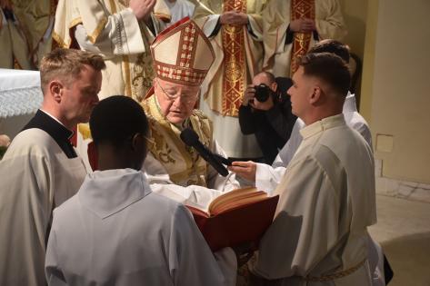 Następnie kandydat złożył przyrzeczenia, wierni odśpiewali Litanię do Wszystkich Świętych, a biskup udzielił święceń diakonatu.