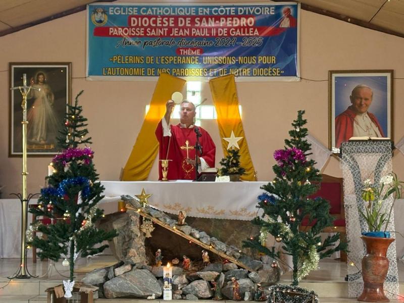 Tym razem ks. Antoni Sokołowski posługujący w Soubre na Wybrzeżu Kości Słoniowej śle najserdeczniejsza życzenia i słowa wielkiej wdzięczności za współtworzenie nowej parafii św. Jana Pawła II.