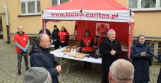 Po liturgii Caritas Diecezji Kieleckiej przygotowała Namiot Miłosierdzia, w którym ubodzy otrzymali ciepły posiłek, odzież, mogli się spotkać i porozmawiać. Centrum Integracji Społecznej Caritas przygotowało dla nich smaczny i pożywny bigos, a wolontariusze Parafialnych Zespołów Caritas upiekli i przynieśli ciasto. Miłą niespodzianka dla wszystkich była pizza, którą przekazała Restauracja Włoska z ul. Sienkiewicza 14 w Kielcach.