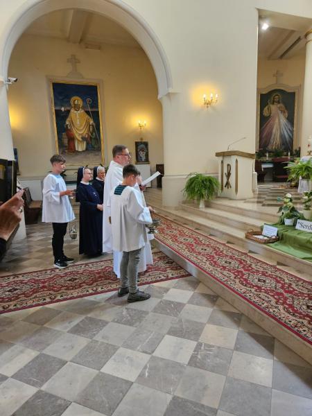 W niedzielę, 23 czerwca 2024 r. podczas każdej Mszy św. siostry mieszkające przy parafii w Solcu-Zdroju wraz z tymi, które przyjechały z Tuchowa (przełożona domu s. M. Ksaweriana Chruślicka, mistrzyni nowicjatu s. M. Agnieszka Niemiec z dwiema nowicjuszkami i s. M. Marcelina Zoń, ochroniarka) włączyły się w oprawę liturgiczną. Dzieliły się też słowem przybliżającym postać bł. Edmunda, człowieka wykształconego, zamożnego i solidaryzującego się z prostym ludem wieśniaczym, który przygarniał najbiedniejsze dzieci, sieroty i tworzyłdla nich tzw. ochronki (przedszkola). Opracował też program wychowania przedszkolnego i całe swoje życie poświęcił na służbę dzieciom, ubogim i chorym.