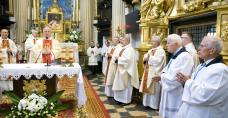 Podczas procesji z darami na ołtarzu złożyliśmy m.in. blankiety margaretkowe osób, które podjęły w tym dniu modlitwę oraz Księgę Wspólnot Margaretkowych Diecezji Kieleckiej w której zapisanych zostało 368 Wspólnot z 63 parafii naszej diecezji, otaczających modlitwą 696 kapłanów. W tym szczególnym dniu przyrzecznie modlitwy w intencji: Ojca Świętego Leona XIV, Księdza Biskupa Jana Piotrowskiego, ks. Kazimierza Ćwierza – nowego kapelana Sióstr Norbertanek oraz ks. Andrzeja Józefowskiego złożyły nowopowstałe Wspólnoty Margaretkowe. Po Mszy św. wspólnie adorowaliśmy Pana Jezusa w Najświętszym Sakramencie.