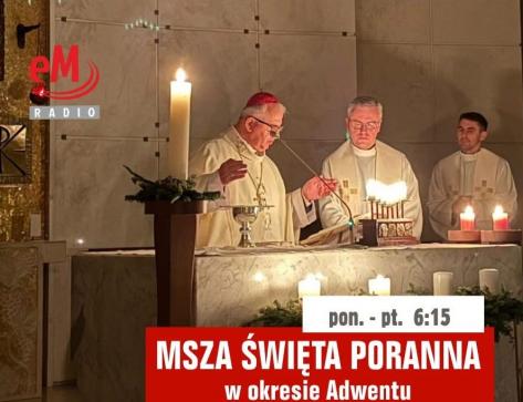 Diecezjalne Radio eM Kielce w okresie Adwentu serdecznie zaprasza do wspólnej modlitwy i duchowej łączności podczas Mszy św. roratniej sprawowanej w Bazylice Katedralnej w Kielcach od poniedziałku do piątku o godz. 6.15.