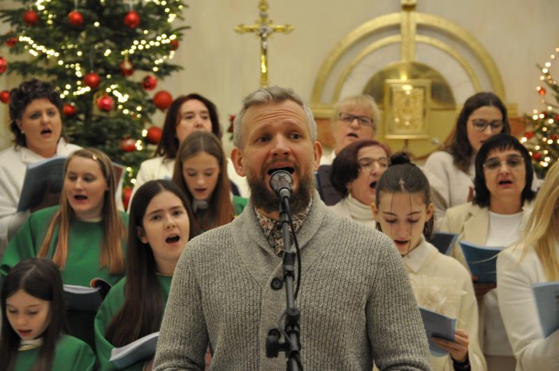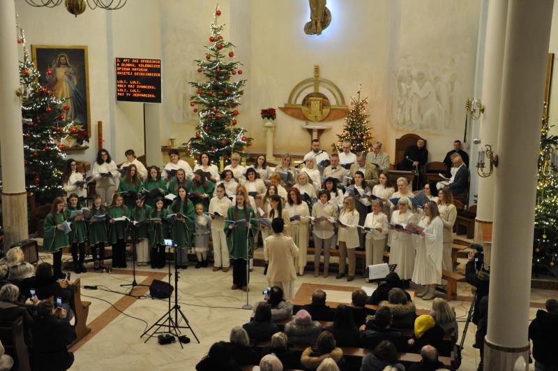 W półtora godzinnym koncercie wybrzmiało mnóstwo pięknych, często zapomnianych kolęd i pastorałek w wykonaniu połączonych sił chóru HARMONIA i scholi GLORIA przy akompaniamencie naszego organisty Piotra Sitkowskiego wraz z muzykami towarzyszącymi. Różnorodność repertuaru, fuzja stylów, ciekawe aranżacje oraz dopełniające je teksty recytowane stanowiły o dynamice tego wydarzenia i płynącym z niego przesłaniu.
