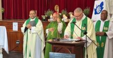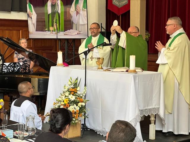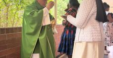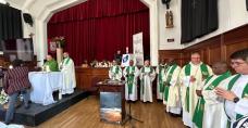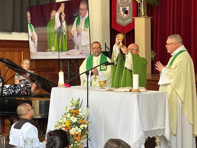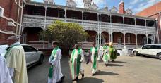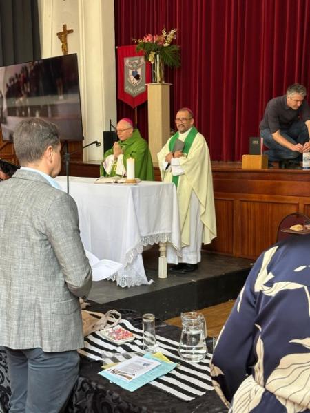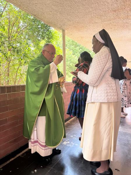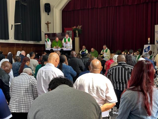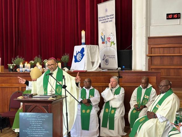 Towarzyszył mi ks. prał. Giacomo Antonicelli, Sekretarz Nuncjatury Apostolskiej. Eucharystia została odprawiona w auli szkoły Holy Family College w Parktown i zgromadziła około 250, nauczycieli, dyrektorów szkół i koordynatorów edukacji religijnej z całej Republiki Południowej Afryki, ponieważ kaplica szkoły była za mała, aby pomieścić wszystkich uczestników. Msza Święta była koncelebrowana wraz z Jego Ekscelencją Biskupem Sithembile Antonem Sipuką, ordynariuszem diecezji Umtata i Prezydentem Krajowej Rady Edukacji Katolickiej (NCBE), który wygłosił homilię. Wspólnie z nami modlili się także ks. Hugh O’Connor, Sekretarz Generalny Konferencji Episkopatu Katolickiego oraz Afryki Południowej oraz Przewodniczący NCBE, jak też siedmiu innych kapłanów.