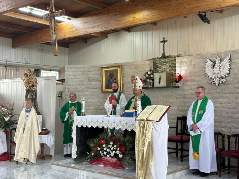 Jeszcze przed Mszą świętą trwaliśmy w ciszy adoracji Najświętszego Sakramentu. Ta cisza była jak delikatny oddech Boga nad naszymi niespokojnymi myślami. Odmówiliśmy różaniec, wplatając w kolejne tajemnice nasze wdzięczności, troski, wspomnienia i prośby – jakbyśmy prześlizgiwali palcami po nici łączącej nas z Maryją, Matką wszystkich pielgrzymujących. O godzinie 10.30 rozpoczęła się Eucharystia – źródło światła nawet w najciemniejszy dzień. Mszę świętą koncelebrowałem razem z nowym proboszczem polskiej parafii, ks. Marcinem Kędzią oraz ks. Piotrem Surdelem SCJ, prowincjałem południowoafrykańskiej Prowincji Sercanów. W liturgii uczestniczył także diakon stały Ryszard. Nie zabrakło również naszych rodzimych Sióstr Służebniczek z Polski – s. Heleny i s. Lidii – oraz ich trzech współsióstr z Afryki, których uśmiechy i modlitwa potwierdzały, że Kościół naprawdę jest domem gromadzącym wszystkie narody. Wśród nas obecny był także pan Piotr Kruze, zastępca szefa misji z Polskiej Ambasady w RPA, wraz z rodziną, dając świadectwo żywej więzi Polaków za granicą.