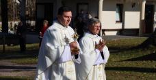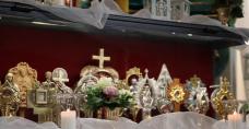 W sobotę, 1 listopada wzgórze brzezińskie odwiedziły tłumy ludzi, którzy odwiedzali m.in. swoich bliskich na cmentarzu znajdującym się obok kościoła. Tego dnia w parafii gościł Ksiądz Biskup Viliam Judák z Nitry na Słowacji, który wprowadził relikwie św. Andrzeja Świerada i Benedykta i wygłosił homilie na Mszach Świętych. Przybliżył postać nowych patronów i zachęcił do troski o swoją świętość. Ksiądz Biskup Viliam mówił: „Kiedy spojrzymy na relikwie, których wiele tutaj posiadacie, widzimy, że są to liczne zastępy dzieci, kobiet i mężczyzn, którzy wyróżniali się niezwykłą miłością do Boga i bliźnich oraz umarli w stanie łaski uświęcającej. To wielcy bohaterowie małych codziennych dni: ojcowie, matki, robotnicy, służące, lekarze, królowie, uczniowie, a nawet niewolnicy. Ludzie, którzy wiernie żyli Ewangelią wszędzie: w rodzinach, klasztorach, chatach i pałacach, w fabrykach, na polach, i w starożytności, średniowieczu, a także w naszych czasach. Te szklanki wody podane chorym, krople potu, krew, która użyźniała ziemię w pierwszych wiekach chrześcijaństwa, wylane łzy matek za nawrócenie swoich dzieci, ofiary z własnego życia. Któż potrafiłaby wymienić wszystkie znane i ukryte ofiary, o których wie tylko sam Bóg. Są tam niewinne dzieci, ale także wielcy grzesznicy, którzy się nawrócili, czasem nawet w ostatniej chwili. Ci wszyscy ludzie, których dziś czcimy byli pokorni, znali swoje ograniczenia, biedę, bezradność, rozdwojenie i grzeszność, ale wiedzieli, że z pomocą Bożą mogą stawać się lepszymi. Święty Augustyn zachęca nas – skoro oni mogli dlaczego nie ty, Augustynie? Gdyby Was Bracia i Siostry zapytano czy chcecie być świętymi, zapewne powiedzielibyście – to nie jest dla mnie, jestem tylko zwykłym człowiekiem, grzesznikiem. A jednak nie bójmy się świętości! Bóg pragnie także naszego uświęcenia. Nie musimy uciekać ze świata. Owszem ktoś może mieć powołanie do odłączenia się od świata tak jak np. Święty Świerad i Święty Benedykt, których relikwie Wam przynieśliśmy. Ale większość z nas obowiązuje: zostańmy w świecie i mówmy o Bogu. Zostańmy pośród naszych braci, zauważajmy ich cierpienia. Bądźmy gotowi rozumieć ich potrzeby, łagodzić i goić ich rany. Zostańmy wśród ludzi, aby pokazać, że można dziś żyć odpowiedzialnie, pracować i troszczyć się o sprawy codzienności i jednocześnie nie oddzielać się od Boga. Że można żyć według jego przykazań i rad. Typ dobrego człowieka, kształtowanego przez Ewangelię, jest właśnie tym typem człowieka, którego potrzebuje współczesny świat, a zarazem jest to jedyna droga do życia wiecznego”.