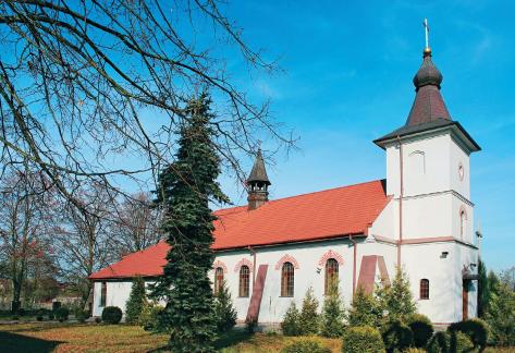 Kościół zbudowano w 1929 r. dla kolonistów niemieckich, którzy opuścili okolicę podczas drugiej wojny światowej. Od 1971 r. świątynia jest miejscem kultu katolickiego, a samodzielna parafia istnieje od 1982 r.