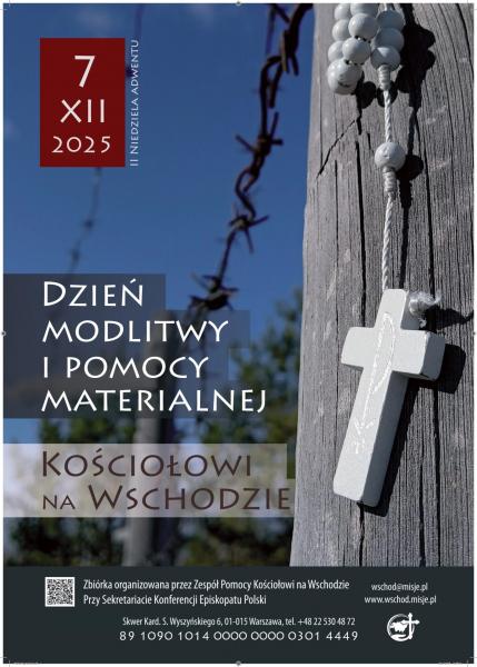 W II Niedzielę Adwentu, 7 grudnia 2025 r., Kościół katolicki w Polsce obchodzi Dzień modlitwy i pomocy materialnej Kościołowi na Wschodzie. Tego dnia w kościołach odbędzie się zbiórka ofiar do puszek.