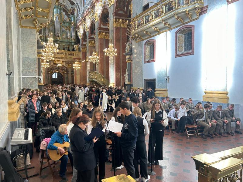 Na ręce Dyrekcji Szkół, Nauczycieli religii, Księży, Sióstr zakonnych i wszystkich przybyłych Wychowawców składam wyrazy wdzięczności za pomoc w organizacji pielgrzymki. Dziękuję za ich wkład i troskę o wychowanie młodego pokolenia na fundamencie wartości chrześcijańskich.