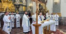 Pielgrzymi po zawiązaniu wspólnoty i modlitewnym przygotowaniu liturgicznym uczestniczyli w Eucharystii w Bazylice. Podczas obu dni swoją obecnością, modlitwą i słowem skierowanym do młodzieży z naszej diecezji towarzyszył Ksiądz Biskup Marian Florczyk.