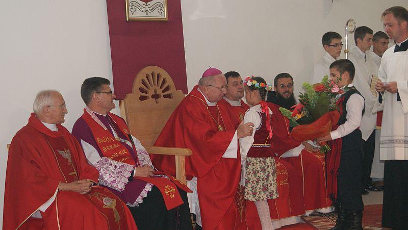 Na początku wszystkich zebranych powitał ks. kanonik Jacek Dąbek, proboszcz parafii. Następnie Ksiądz Biskup dokonał poświęcenia nowych elementów, które pojawiły się w budującej się świątyni – a są nimi: nowy sufit, drzwi i tabernakulum. Po Mszy św. odbyła się procesja z Najświętszym Sakramentem wokół kościoła.
