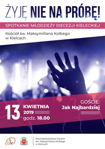 Jak co roku – w wigilię Niedzieli Palmowej odbył się Diecezjalny Dzień Młodzieży, przeżywany pod hasłem „Żyję nie na próbę”. Eucharystii w kościele św. Maksymiliana Kolbego w Kielcach przewodniczył Biskup Kielecki Jan Piotrowski.